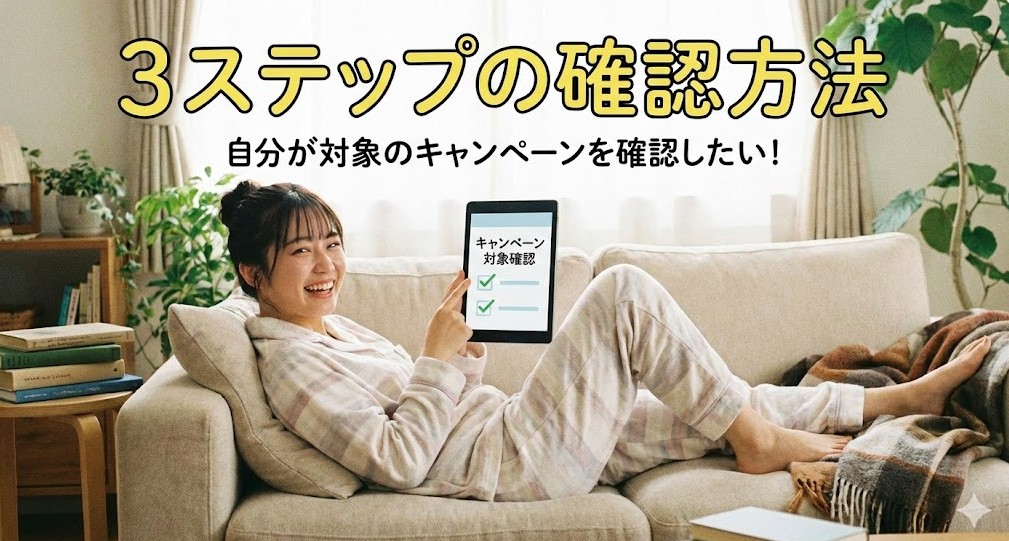 「自分が対象のキャンペーンを確認したい!」という方向けに、3ステップで完了する確認方法を図解します。