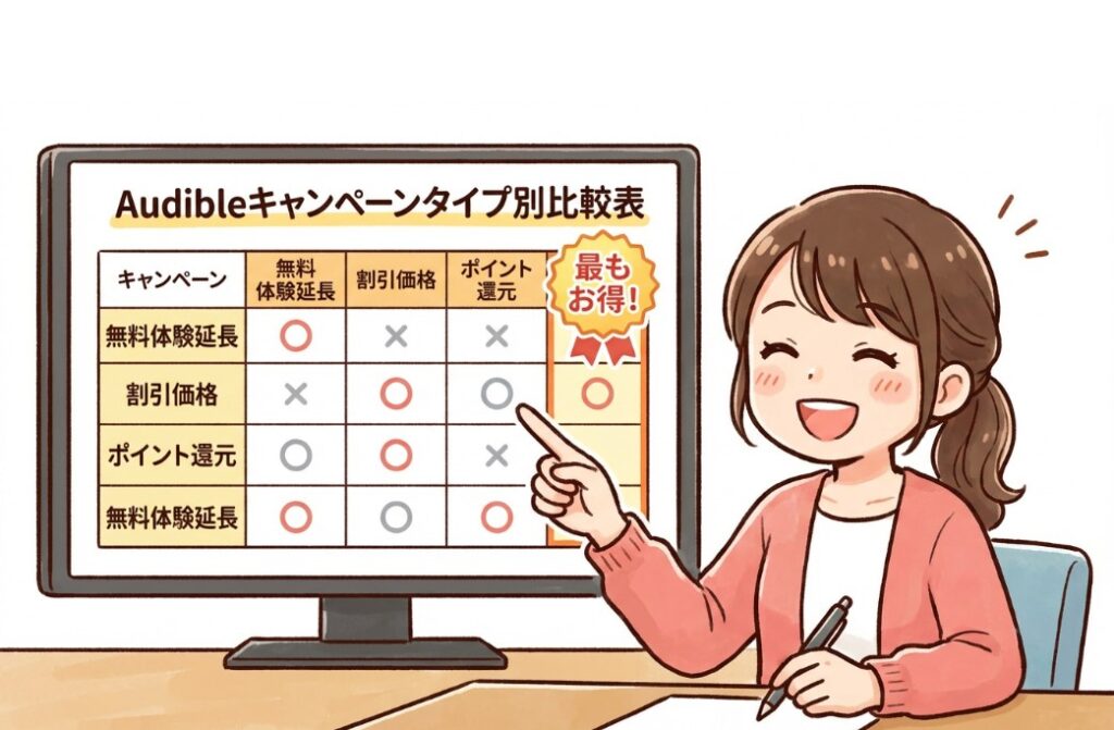 「Audibleのキャンペーン、今どれがお得なの?」「自分は対象者なのか分からない…」と困っていませんか?