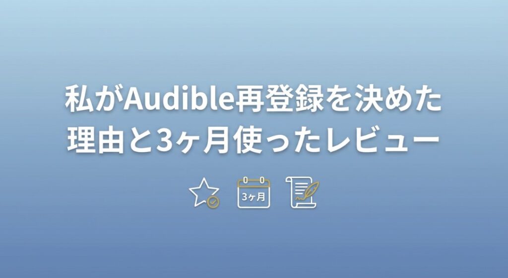 私自身、一度は「Audibleは自分には合わない」と思って退会しましたが、サービス改善と生活の変化により、再登録して本当に良かったと感じています。今では月4冊ペースで聴き続け、読書量が格段に増えました。